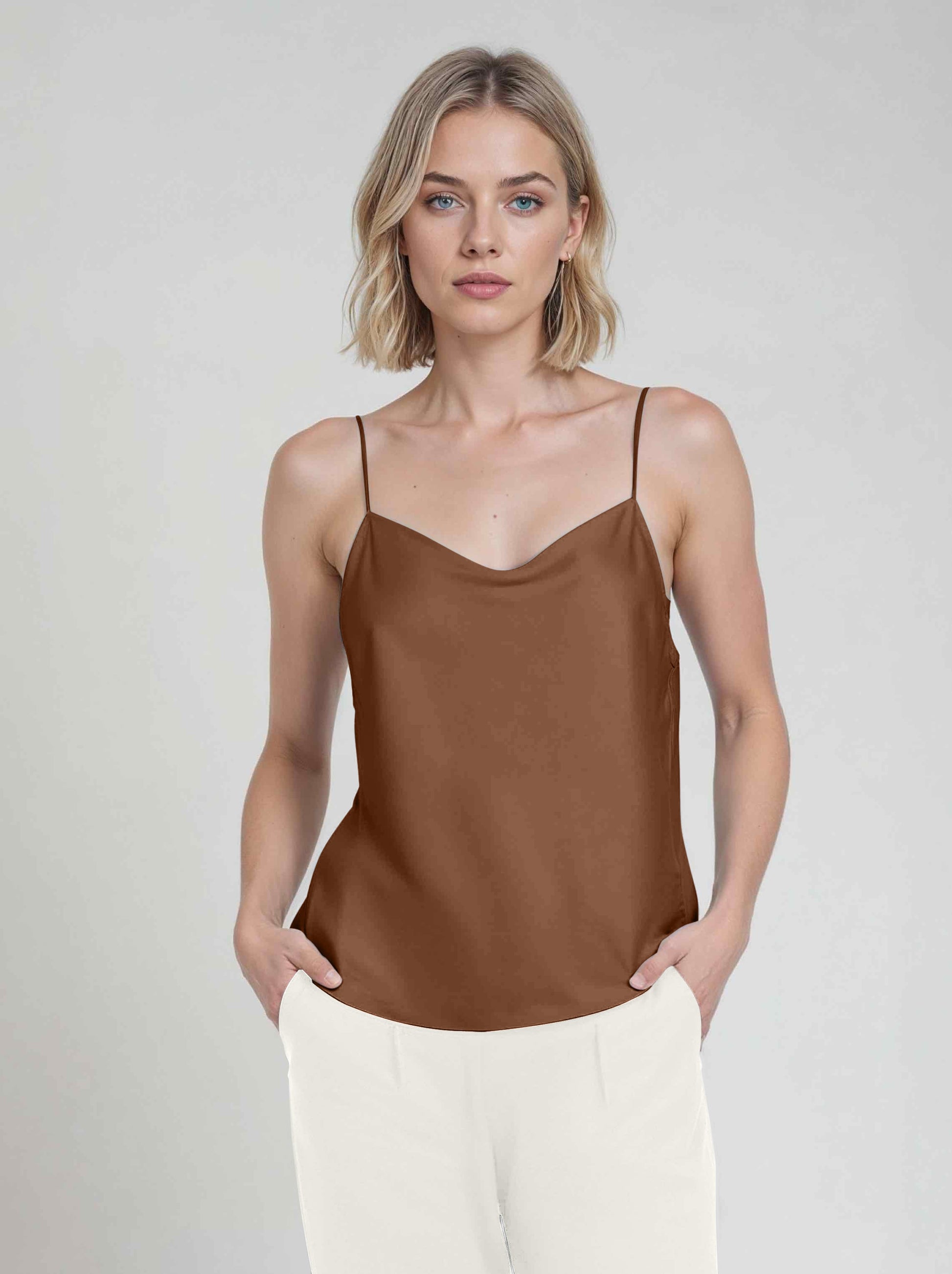 Cut on the bias for a figure-flattering drape that hugs your curves, this new sleek slip camisole is finished with an ultra sophisticated cowl neckline with adjustable slider straps. Wear it with the matching Karlie Jacket and Allie Ankle Pants or Carina Palazzo Pants for that upcoming summer white party or your low key intimate wedding, why not And layer it underneath blouses or favorite blazer once the weather chills down. Made in our luxuriously soft, lightweight and eco-friendly TENCEL , this camisole is due for a spot at the front of your year-round favorites. 100% Vegan.