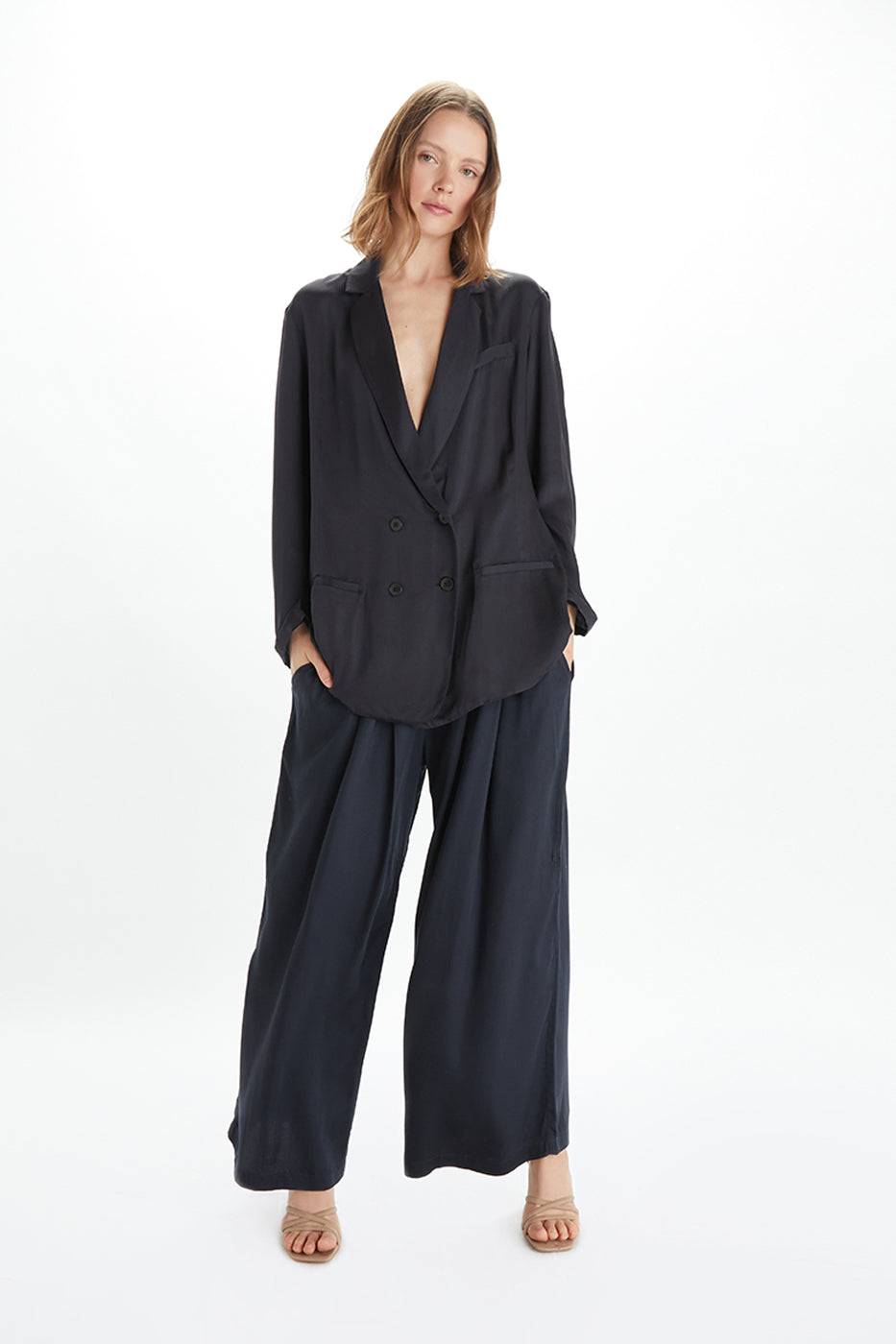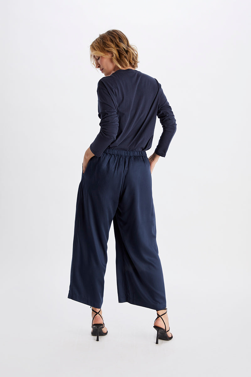 - Meet your new favorite pants. This easy pull on style features side pockets and elasticized back waist band with a flat front finish. We love wearing ours with sandals and sneakers for the transition season and booties for the cooler temperatures in fall. Made in our luxuriously soft, lightweight and eco-friendly TENCEL