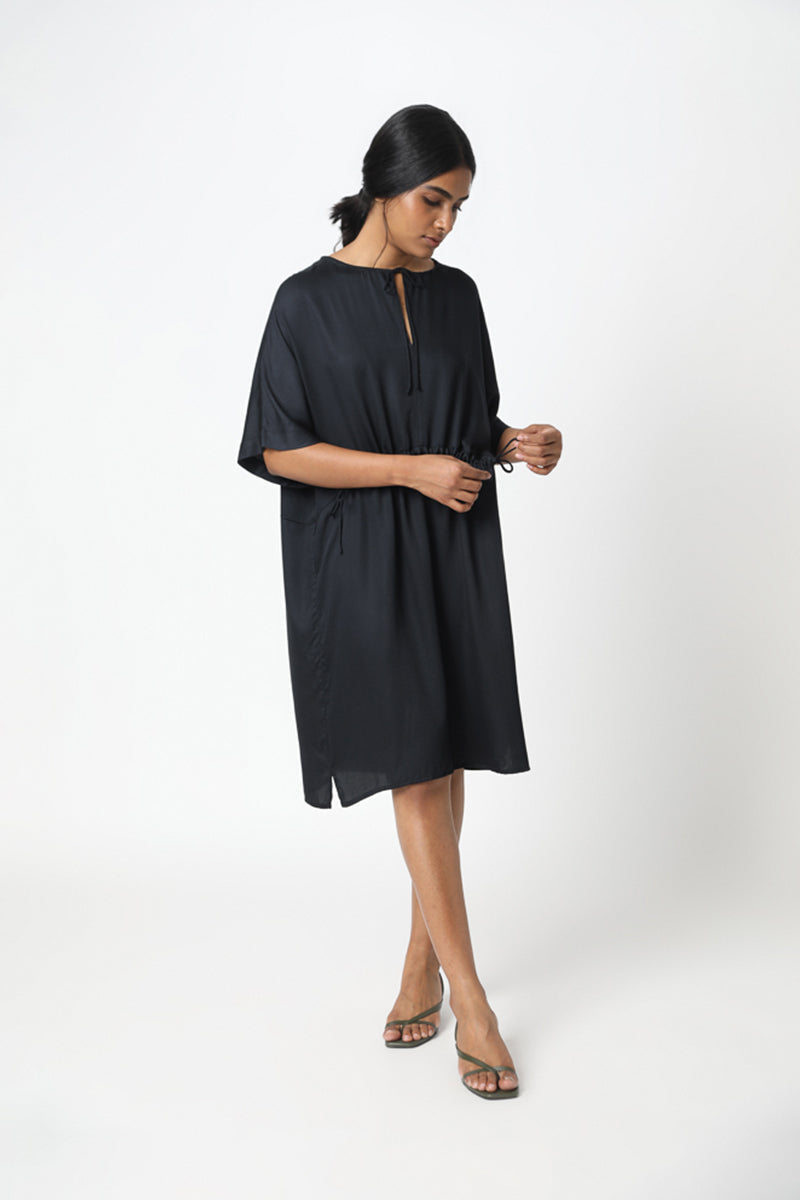 Sometimes, you can have it all. This dress merges the best of minimalist-chic style and total comfort. Featuring short sleeves above the elbow, a gathered waistline and open neck detail with tie. Fabricated with our signature, breathable TENCEL fabric, this dress will keep you cool even during the hottest times of the year.