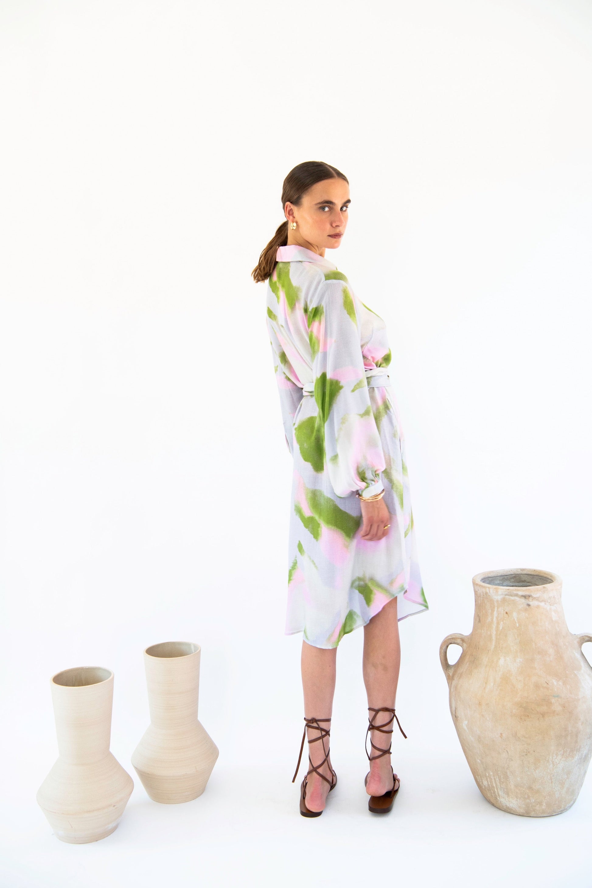 Meticulously crafted for the modern woman, this dress seamlessly blends sophistication with comfort, offering versatility for any occasion. Made from luxurious satin Tencel fabric, this shirt dress envelops you in a soft and lustrous embrace, ensuring a feeling of luxury with every wear. The long sleeves and shirt collar exude timeless charm, while the hidden button front closure adds a touch of understated elegance.